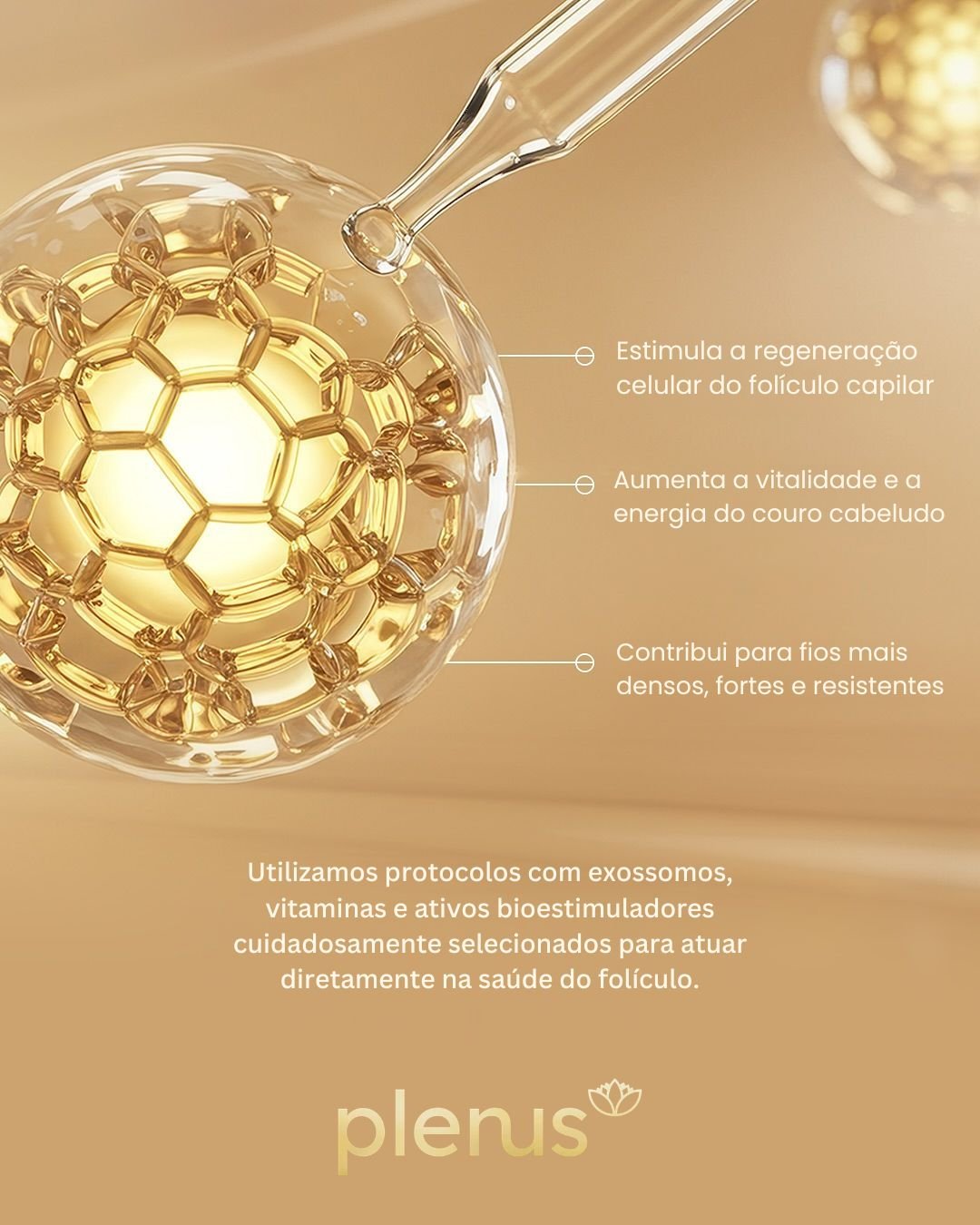 Para queda de cabelo, utilizamos protocolos com exossomos, vitaminas e ativos bioestimuladores cuidadosamente selecionados para atuar diretamente na saúde do folículo. Esses componentes auxiliam na comunicação celular, favorecem a regeneração do ambiente capilar e potencializam o crescimento saudável dos fios.